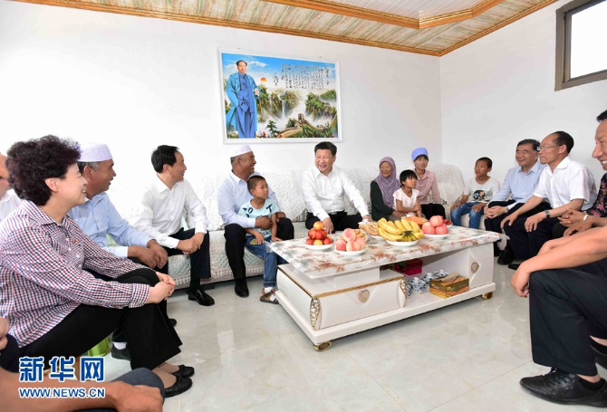 2016年7月19日,習(xí)近平總書記在寧夏銀川市永寧縣閩寧鎮(zhèn)原隆移民村回族移民群眾海國寶家中看望。 新華社記者 李濤/攝