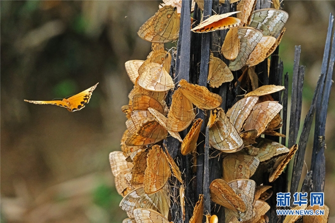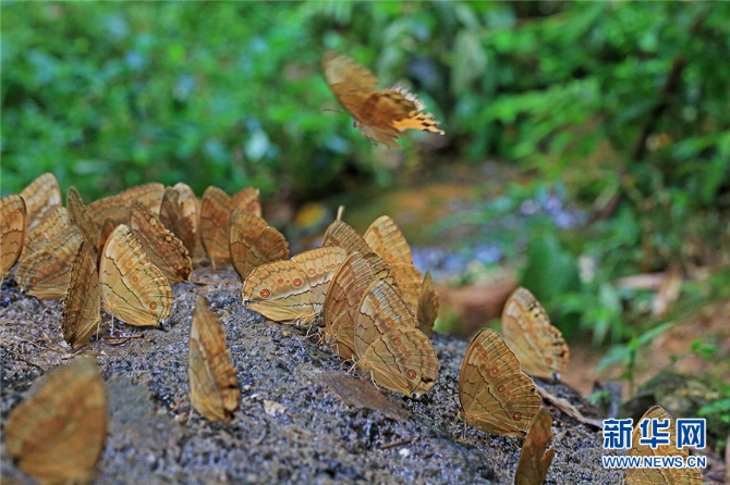 馬鞍底鄉(xiāng)蝴蝶資源十分豐富。我國共有蝴蝶種類12科,馬鞍底鄉(xiāng)就有11科,蝴蝶種類達(dá)270多種,包括箭環(huán)碟、鳳眼蝶、枯葉蛺蝶、白帶鋸?fù)惖?其中箭環(huán)蝶數(shù)量最為龐大。馬鞍底鄉(xiāng)的箭環(huán)蝶主要集中在拉登河、馬拐塘、標(biāo)水巖、天生橋等片區(qū),一般在每年5月底6月初開始破繭成蝶,數(shù)量均超過一億只。新華網(wǎng)發(fā)(張洪科 攝)