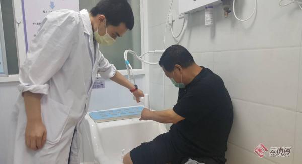 在醫(yī)生的指導(dǎo)下,被狗咬傷的患者正在清洗傷口。 彭錫 攝