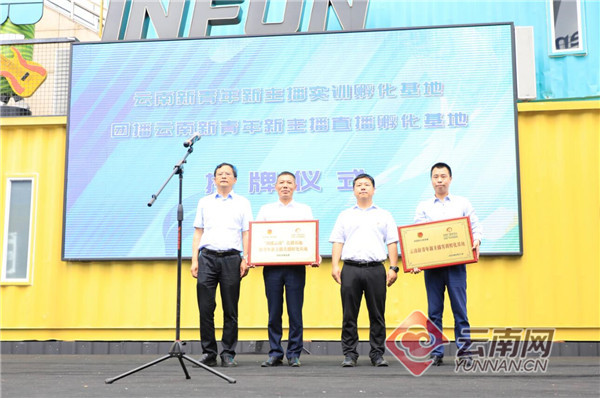 活動現(xiàn)場,共青團(tuán)云南省委黨組成員、副書記趙攀峰,云南廣播電視臺黨委委員、紀(jì)委書記曹渭海為云南紡織(集團(tuán))股份有限公司、云南天度投資集團(tuán)有限公司頒授了“團(tuán)播云南”直播基地暨新青年新主播直播孵化基地牌匾。