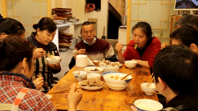 4月29日,一家人正在吃飯。新華網(wǎng) 劉云 攝