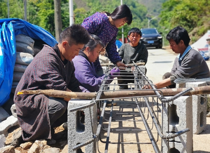 修水柜、起新房……記者在隆林石山村屯采訪時,熱火朝天的建設景象不時可見。