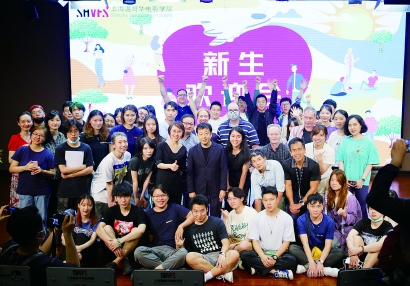 新生歡迎會上,賈樟柯與到場師生合影