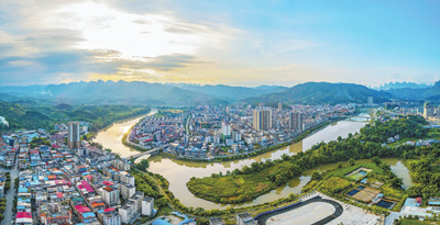 廣西環(huán)江毛南族自治縣城區(qū)全景圖。鄧煒煌攝(人民視覺(jué))