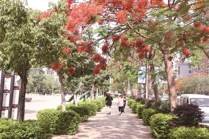 進(jìn)入夏季,賓川縣城內(nèi)的鳳凰花燦爛開放,一樹樹花兒似燃燒的云霞,熱烈激情,為縣城增添了一道美麗的景觀,令人悅目怡心。