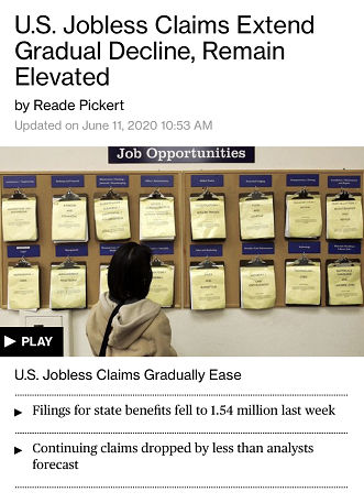 美國(guó)勞工部當(dāng)?shù)貢r(shí)間11日公布數(shù)據(jù)顯示,在截至6月6日的一周里,美國(guó)首次申請(qǐng)失業(yè)救濟(jì)人數(shù)為154.2萬(wàn),低于前一周的187.7萬(wàn)。自3月底達(dá)到頂峰以來(lái),美國(guó)首次申請(qǐng)失業(yè)救濟(jì)人數(shù)持續(xù)下降,但仍是2008年金融危機(jī)期間峰值的兩倍多,形勢(shì)遠(yuǎn)談不上樂(lè)觀。