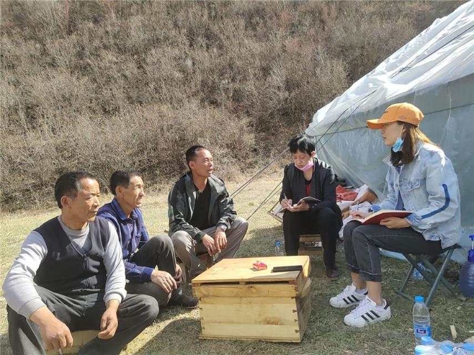 六盤山上植被豐富,有3600多種中草藥,這里也盛產百花蜜。山下的草坪上散落著數百個蜂箱,蜂場的小帳篷里住著三位養(yǎng)蜂人,張秉林、梁國杰、王文明。“以前沒養(yǎng)蜂的時候靠打工。因為我是建檔立卡戶,所以2015年看到扶貧對養(yǎng)蜂的補助政策好,就決定去陜北老劉蜂場學習養(yǎng)蜂?!逼渲凶钤玳_始養(yǎng)蜂的張秉林講起養(yǎng)蜂致富路。