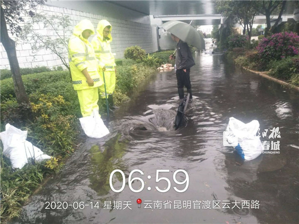 此外,針對(duì)宏業(yè)路下穿隧道發(fā)生的淹積水,西山區(qū)防汛辦積極組織斷交維持現(xiàn)場(chǎng)秩序,并組織抽排。