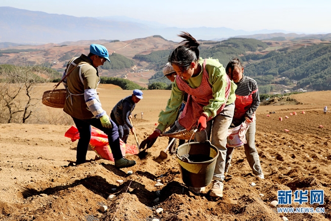 昭通群眾在栽種洋芋(3月15日攝)。新華網(wǎng)發(fā) 永善縣委宣傳部供圖