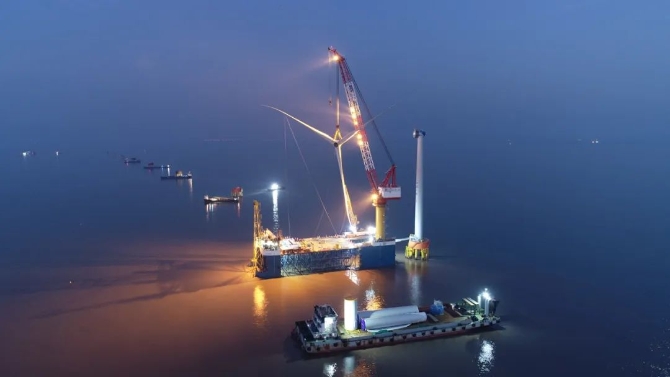 中廣核岱山4#海上風電項目位于浙江省舟山市岱山島西北側海域,總容量234MW,共安裝54臺海上風力發(fā)電機組。2020年2月以來,在積極做好疫情防控的前提下,中廣核岱山海上風電項目科學安排工期,全面推動復工建設。項目投運后,年發(fā)電量可達6.1億千瓦時,將顯著改善當?shù)啬茉唇Y構,為長三角地區(qū)提供穩(wěn)定電力,助力綠色能源生態(tài)發(fā)展。