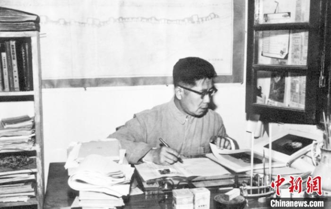 20世紀(jì)50年代,常書鴻在敦煌文物研究所辦公室工作 未名 攝
