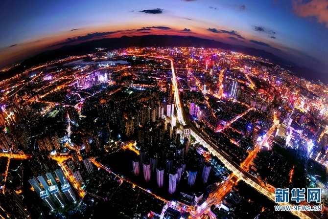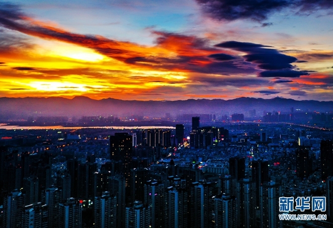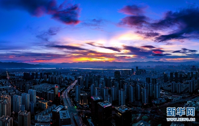 春城昆明,一年四季,一日四時(shí),都有看不完的美景。夜幕降臨下的昆明,晚霞褪去,華燈初上,萬家燈火拼湊出一幅繁華熱鬧、溫暖祥和的城市夜景圖。圖為航拍視角下的昆明夜景(攝于6月1日)。新華網(wǎng)發(fā)(崔永江 攝)