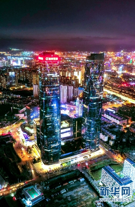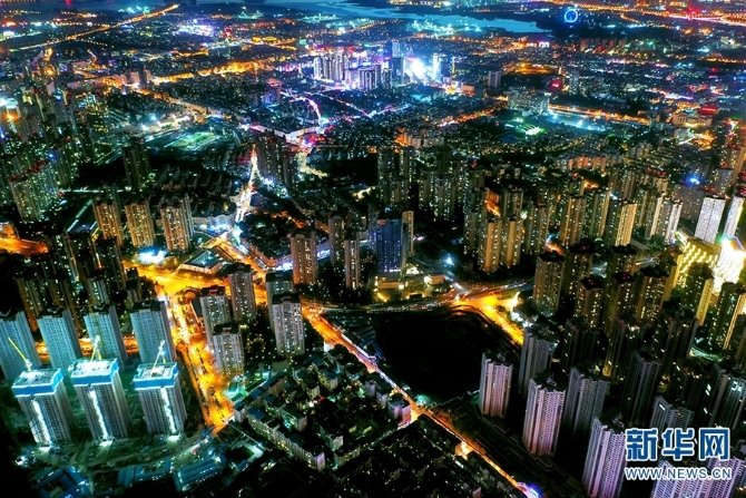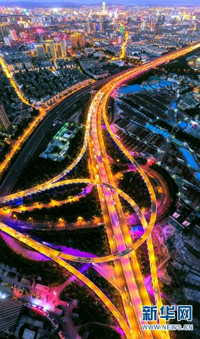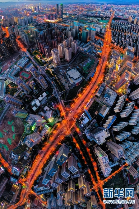 圖為航拍視角下的昆明夜景(攝于6月1日)。新華網(wǎng)發(fā)(崔永江 攝)