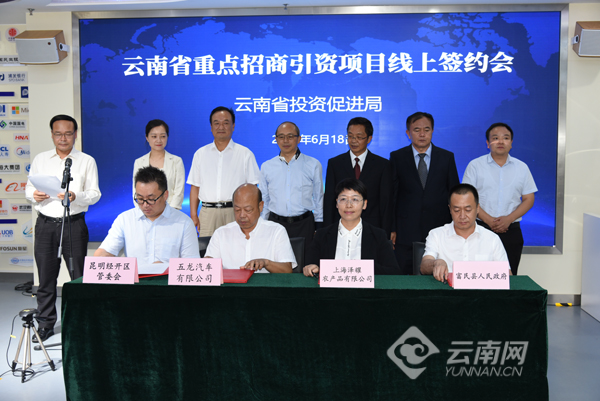 6月18日下午,云南省舉行了重點招商引資項目線上簽約會,共簽約項目179個,其中,內(nèi)資項目164個,簽約金額2643.48億元;外資項目15個,簽約金額16.42億美元。簽約會采取視頻連線方式舉行,在云南省投資促進(jìn)局設(shè)主會場,除昆明市在主會場簽約外,其他州市通過線上視頻方式參會簽約。