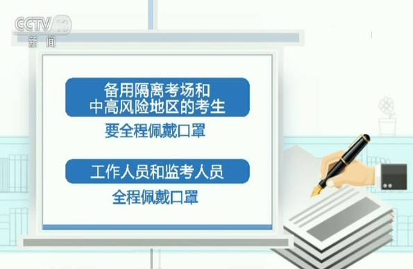 低風(fēng)險(xiǎn)地區(qū)的考生在進(jìn)入考場(chǎng)前要佩戴口罩,進(jìn)入考場(chǎng)就座后,可以自主決定是否佩戴;