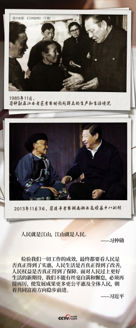 習仲勛心中始終裝著人民,終生踐行群眾路線;習近平把人民放在心中最高位置,將更好滿足人民群眾對美好生活的向往作為奮斗的目標。