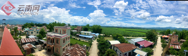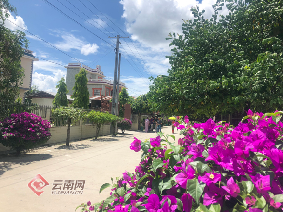 6月19日,位于祖國西南邊陲的傣族村寨瑞麗市弄煥村瓜果飄香。下午時分,陣陣熱浪襲來,不一會兒功夫天空中烏云密布,傾盆大雨說來就來。待雨過天晴,被雨點(diǎn)打落的三角梅鋪滿家家戶戶的門前,浪漫氣息十足,令來訪記者們不禁感嘆,美麗鄉(xiāng)村就在眼前。