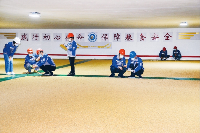 圖為2020年4月20日,江蘇省無(wú)錫市國(guó)家糧食儲(chǔ)備庫(kù)工作人員正在進(jìn)行常規(guī)倉(cāng)情、糧情檢查,保障儲(chǔ)備糧的內(nèi)在品質(zhì)和新鮮度。國(guó)家糧食和物資儲(chǔ)備局供圖