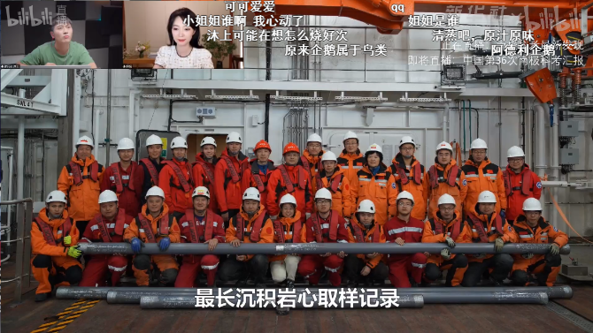 “這得益于雪龍2號(hào)裝備了先進(jìn)的長(zhǎng)巖芯取樣器。”中國(guó)第36次南極科考隊(duì)員、自然資源部第一海洋研究所的唐正表示,在南極周邊的海底沉積物采樣,相當(dāng)于在南極這個(gè)全球氣候變化的“穴位”上做“針灸”,此次破紀(jì)錄的成功采樣,能幫助人們了解約200萬(wàn)年的南極變化歷史,為理解全球氣候變化規(guī)律提供重要參考。 直播中,新華社記者張揚(yáng)、B站UP主盜月社沐上以主播身份與資深南極記者劉詩(shī)平連線,暢聊南極故事。在“南極萬(wàn)象云講堂”環(huán)節(jié),中國(guó)第36次南極科考隊(duì)大洋考察隊(duì)隊(duì)長(zhǎng)羅光富、北京師范大學(xué)生命科學(xué)學(xué)院教授鄧文洪等多位南極專家還對(duì)南極的鳥類、海洋生物、建筑、醫(yī)學(xué)等知識(shí)等作了生動(dòng)科普。兩個(gè)多小時(shí)的直播,峰值人氣達(dá)到140多萬(wàn),在歡樂(lè)的彈幕中圓滿結(jié)束。
