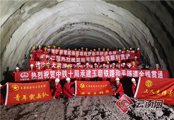 6月20日和平隧道貫通,奮戰(zhàn)4年的施工人員慶祝隧道貫通。李永遠 攝