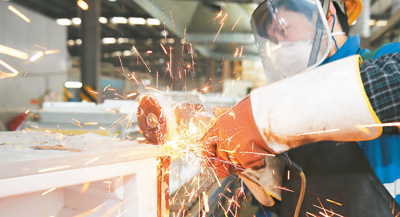 日前,在位于四川省內(nèi)江市東興經(jīng)濟開發(fā)區(qū)的四川中再生資源開發(fā)有限有限公司生產(chǎn)車間內(nèi),工人正拆解廢舊家電。蘭自濤攝(人民圖片) |