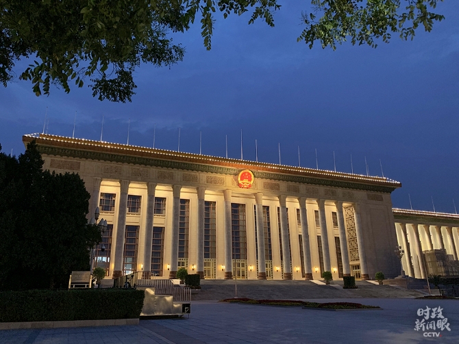 △夜幕下的人民大會(huì)堂。(總臺(tái)央視記者程鋮拍攝)