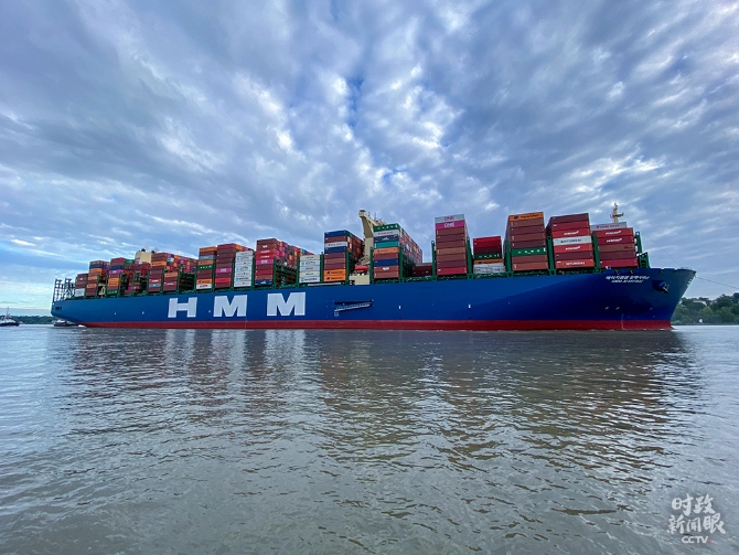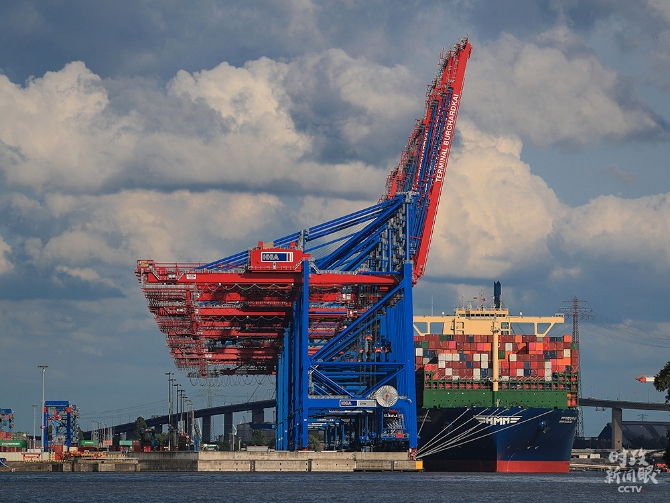 △6月7日,全球最大集裝箱船“HMM阿爾赫西拉斯”號首次抵達(dá)德國漢堡港。
