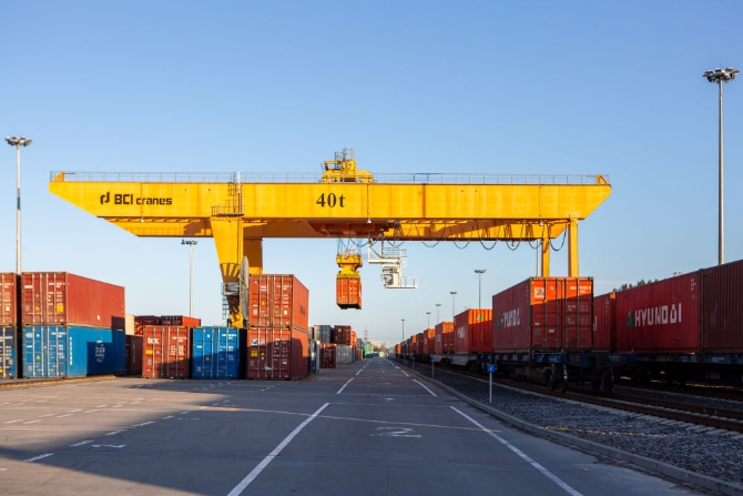 4月14日,在立陶宛首都維爾紐斯,中歐班列(渝新歐)“中國郵政號(hào)”在卸貨。(新華社發(fā))(立陶宛郵政供圖)