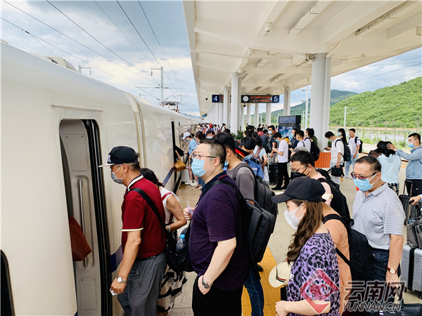 6月25日,端午小長假首日,云南鐵路迎來客流高峰,當日發(fā)送旅客14萬人以上。中國鐵路昆明局集團增開昆明至大理、麗江、彌勒、普者黑、蒙自、河口、羅平等方向動車及普速列車,滿足旅客出行需求。