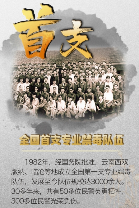 全國首支專業(yè)禁毒隊(duì)伍、首位犧牲的緝毒警察、首支流動查緝專業(yè)隊(duì)伍、首場禁毒人民戰(zhàn)爭、首個國家禁毒大數(shù)據(jù)中心、首家3D網(wǎng)上禁毒教育基地......這些全國禁毒“之首”和“第一”,你知道幾個?一組圖告訴你。