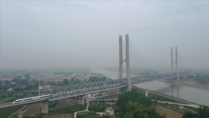 商合杭高鐵橋梁比例高、車站密集。沿線共有車站29座,平均站間距28.4公里,多站點(diǎn)布局和運(yùn)輸組織合理結(jié)合?!叭€跨越長江、裕溪河、淮河、穎河分別采用588米、324米、228米、220米的大距度橋梁,還采用了眾多48至196米的大跨度和門式墩等特殊結(jié)構(gòu),這些都是商合杭高鐵的鮮明特點(diǎn)?!毙毂<t說。