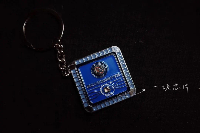 嵌入2.8mm*2.8mm芯片的鑰匙扣畢業(yè)禮物。電子科技大學(xué)供圖