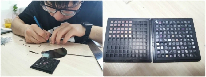 用金剛刀手工劃出140余片芯片