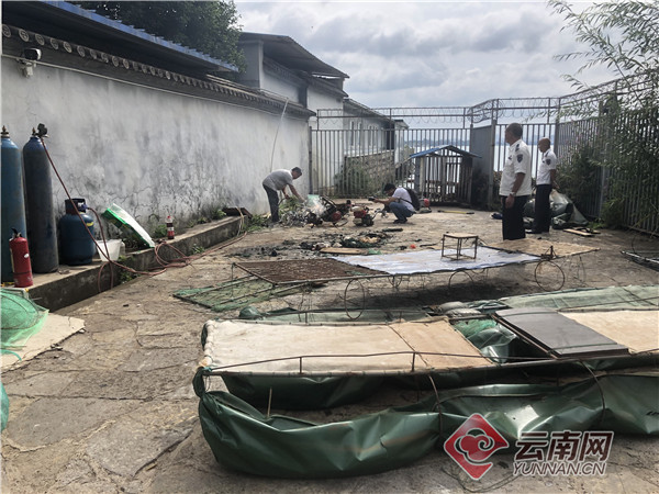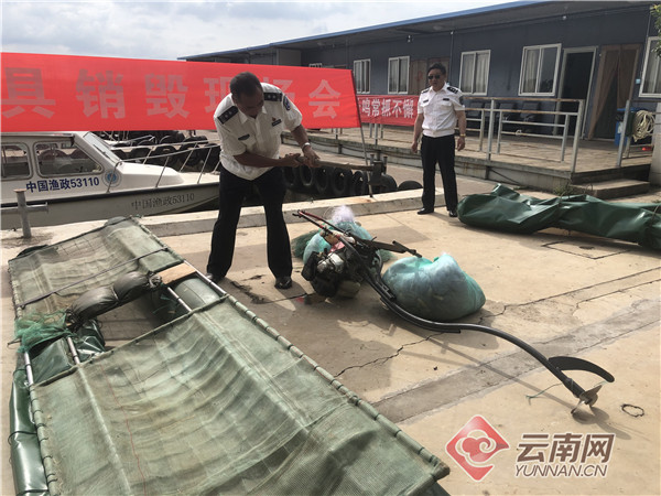執(zhí)法人員對(duì)滇池違禁漁具進(jìn)行集中銷(xiāo)毀