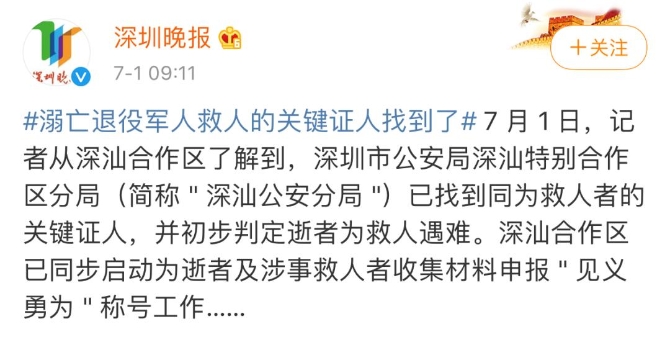 截至發(fā)稿前,深汕合作區(qū)工作專班見義勇為調(diào)查認(rèn)定組已啟動相關(guān)資料的匯總工作,并將盡快為逝者及香某向上級申報“見義勇為”稱號,同時,深汕公安分局將通過繼續(xù)走訪百安村民、發(fā)動村委和群眾、尋找當(dāng)日被救男童及家屬等渠道,全面核實事發(fā)情況,告慰逝者、寬慰其家屬。