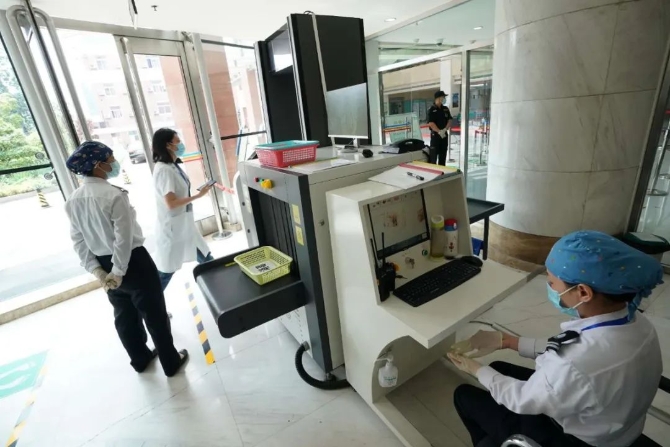 7月1日一早,北京中醫(yī)醫(yī)院門(mén)診樓大廳,除雙通道安檢門(mén)外,還配備了一臺(tái)X光檢測(cè)儀。每位患者“連人帶包”通過(guò)安檢的時(shí)間大約在10秒鐘左右。