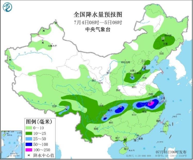 據(jù)中央氣象臺(tái)預(yù)計(jì),7月4日至6日,西南地區(qū)至長(zhǎng)江中下游等地大部地區(qū)有大到暴雨,局地伴有雷暴大風(fēng)等強(qiáng)對(duì)流天氣。其中重慶、貴州、云南、湖北、河南、安徽、江蘇、上海等地部分地區(qū)有大暴雨,最強(qiáng)降雨時(shí)段為4日白天至5日白天。