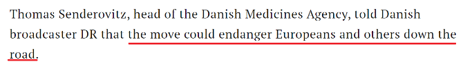 丹麥藥品管理局局長(zhǎng)托馬斯·森德羅維茨則表示,美國(guó)囤貨行為可能危及歐洲和其他國(guó)家的未來(lái),“我從沒(méi)見過(guò)這樣的事,一家公司只向一個(gè)國(guó)家出售股票,這很奇怪,也很不合適。”