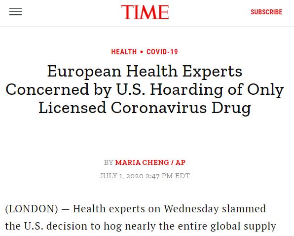 △《時代》稱,對于美國囤積藥物的行為,歐洲衛(wèi)生專家感到擔(dān)憂
