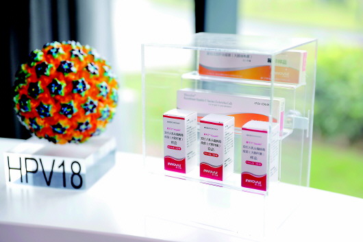 國產(chǎn)宮頸癌疫苗(馨可寧)樣品展示。新華社記者付敏攝