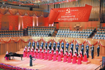“不忘初心 為黨頌歌”國家大劇院慶祝中國共產(chǎn)黨成立99周年合唱音樂會(huì)現(xiàn)場。