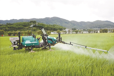 7月初的炎夏,華南農(nóng)業(yè)大學(xué)增城教學(xué)科研基地的稻田郁郁蔥蔥。一輛無人駕駛噴霧機(jī)駛出機(jī)庫,并充分展現(xiàn)出“智商”。機(jī)器經(jīng)過兩次靈活轉(zhuǎn)彎到達(dá)田里,展開兩側(cè)長長的噴桿又縮了回去。它發(fā)現(xiàn)自己所在位置不對,重新調(diào)整位置再次打開噴桿開始作業(yè),在半小時(shí)內(nèi)完成了14畝水稻田的噴霧工作。