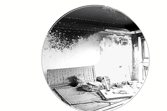 起火點(diǎn)是在三樓一間臥室。房間里床、衣柜等物品在燃燒,客廳以及樓道充斥著濃煙。于是,消防員立即鋪設(shè)水帶對火勢進(jìn)行撲救,幾分鐘后,明火被成功撲滅。
