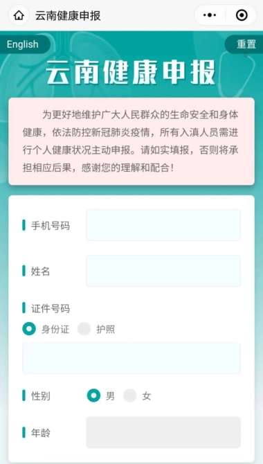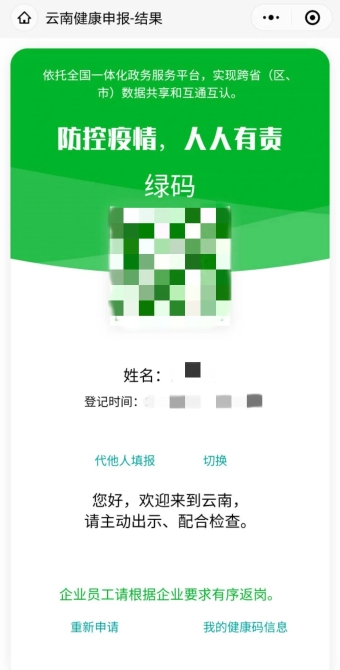 “云南健康碼” 微信小程序