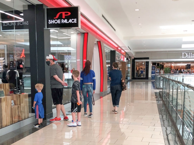 5月5日,因新冠疫情關閉數(shù)周后,美國得克薩斯州達拉斯市的一些商場重新開門,但營業(yè)時間有所縮短。新華社發(fā)(田丹攝)