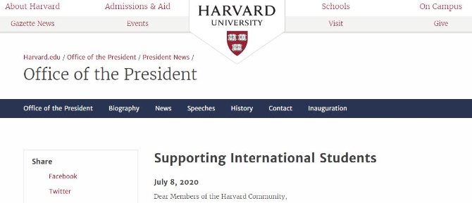 △哈佛大學(xué)校長辦公室發(fā)聲支持留學(xué)生