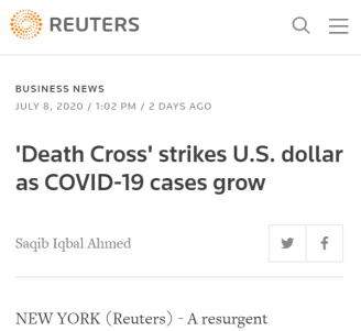 路透社稱,美元指數(shù)日前已較近期高點下跌6%,而期貨市場上的美元凈空倉規(guī)模接近2018年以來的最高點。根據(jù)美國銀行全球研究部分析師團隊的研究,美元此前的跌勢引發(fā)了被稱為“死亡交叉”的技術(shù)形態(tài),即50日移動均線跌破200日移動均線。該行分析師稱,1980年以來,九次出現(xiàn)“死亡交叉”后,美元有八次進入疲軟期。