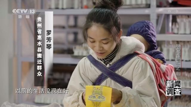 貴州省惠水縣搬遷群眾 徐明霞:我現(xiàn)在就是很穩(wěn)定了,我有四千多元(工資),我一下班回去,就能看得到我家寶寶,還有我公公婆婆,那就是一家人,雖然我在里面加班很辛苦,但是我回去看到他們以后,我就一點(diǎn)都不辛苦。