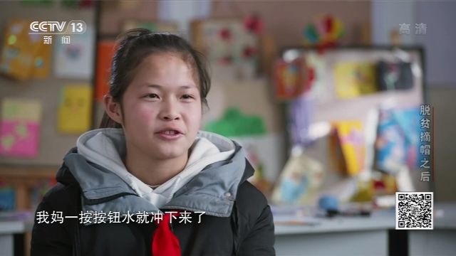 貴州省惠水縣搬遷安置小學(xué)學(xué)生 羅浪微:有一次我家來(lái)了那些老家的親戚,上廁所就叫我媽媽的名字,就說(shuō)這個(gè)要怎么沖,我媽一按按鈕水就沖下來(lái)了,然后我的那個(gè)親戚就說(shuō),這個(gè)好神奇啊,居然可以沖水。