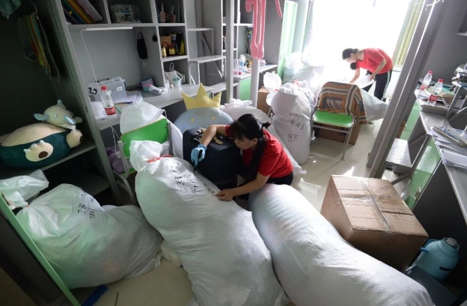連日來,在北京體育大學(xué)的學(xué)生宿舍里,453名教職員工正忙碌著為3687名畢業(yè)生分批次進行行李打包、郵寄和留置物品存放工作。